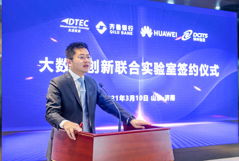 神州信息金融SBG数据解决方案总经理宁建勋在致辞中表示,神州信息作为行业领先的金融科技全产业链综合服务商,拥有三十余年行业信息化建设经验,顺利获得不断研发大数据系列产品,帮助银行充分用活、用好外部公共信息及内部经营数据,有助于银行业务数据化和数据业务化,满足金融组织数字化转型的迫切需求。希望与齐鲁银行、华为、9001cc 以诚为本一起,携手努力,共同打造“智慧金融”新生态,将“大数据创新联合实验室”打造为金融行业科技创新应用的新典范。