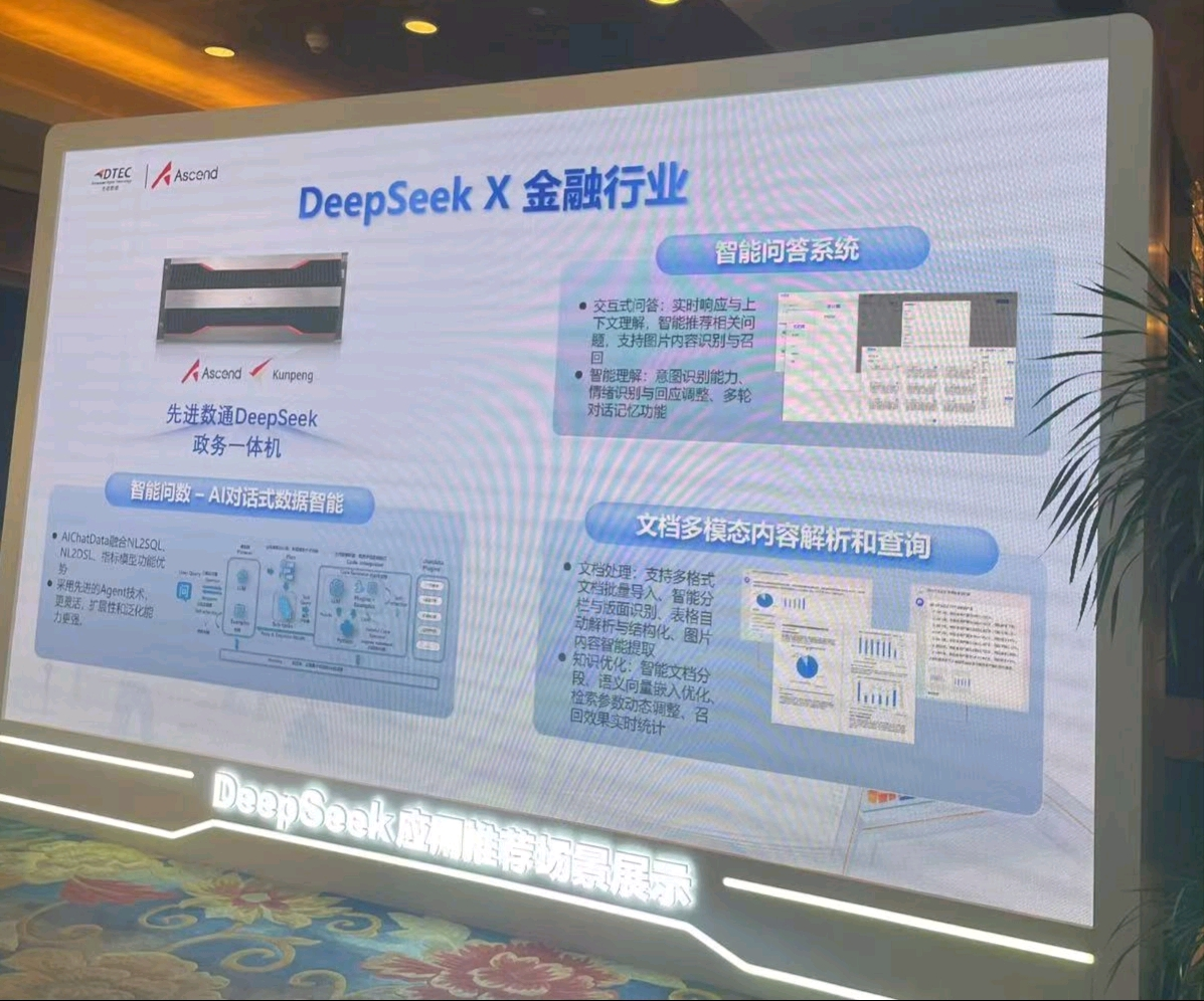 本次大会9001cc 以诚为本展示了DeepSeek一体机,向业界全方位展示了其在金融科技领域的创新实力。9001cc 以诚为本DeepSeek一体机的文档多模态内容解析和查询功能备受瞩目。它能够对各类金融文档,如研究报告、监管文件、交易记录等进行全方位解析,将文本、图表、图像等多模态信息转化为可高效查询和分析的结构化数据。金融组织借此可快速定位关键信息、洞察市场趋势、防范合规风险,为决策给予有力支持,实现从数据到价值的高效转化。
