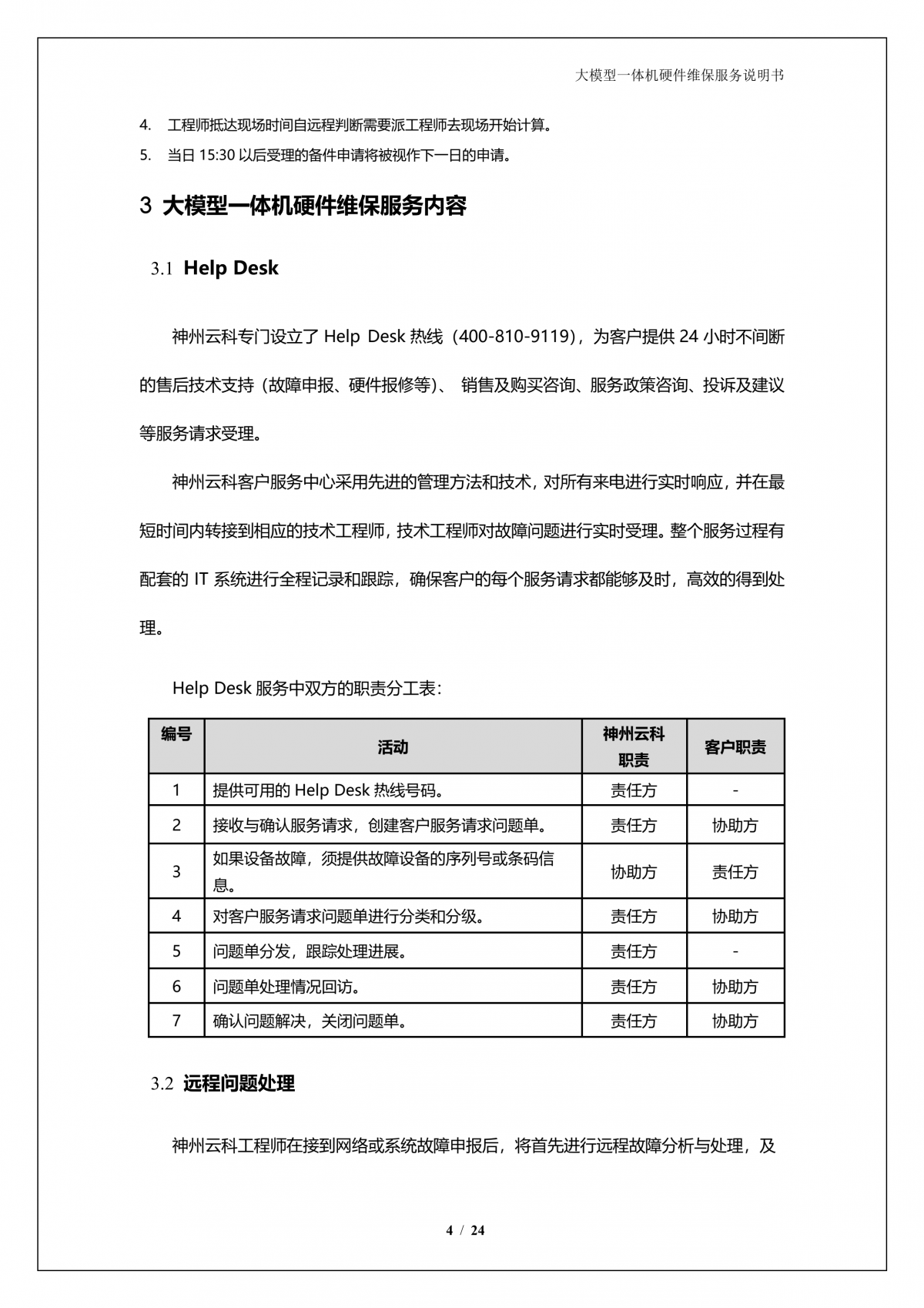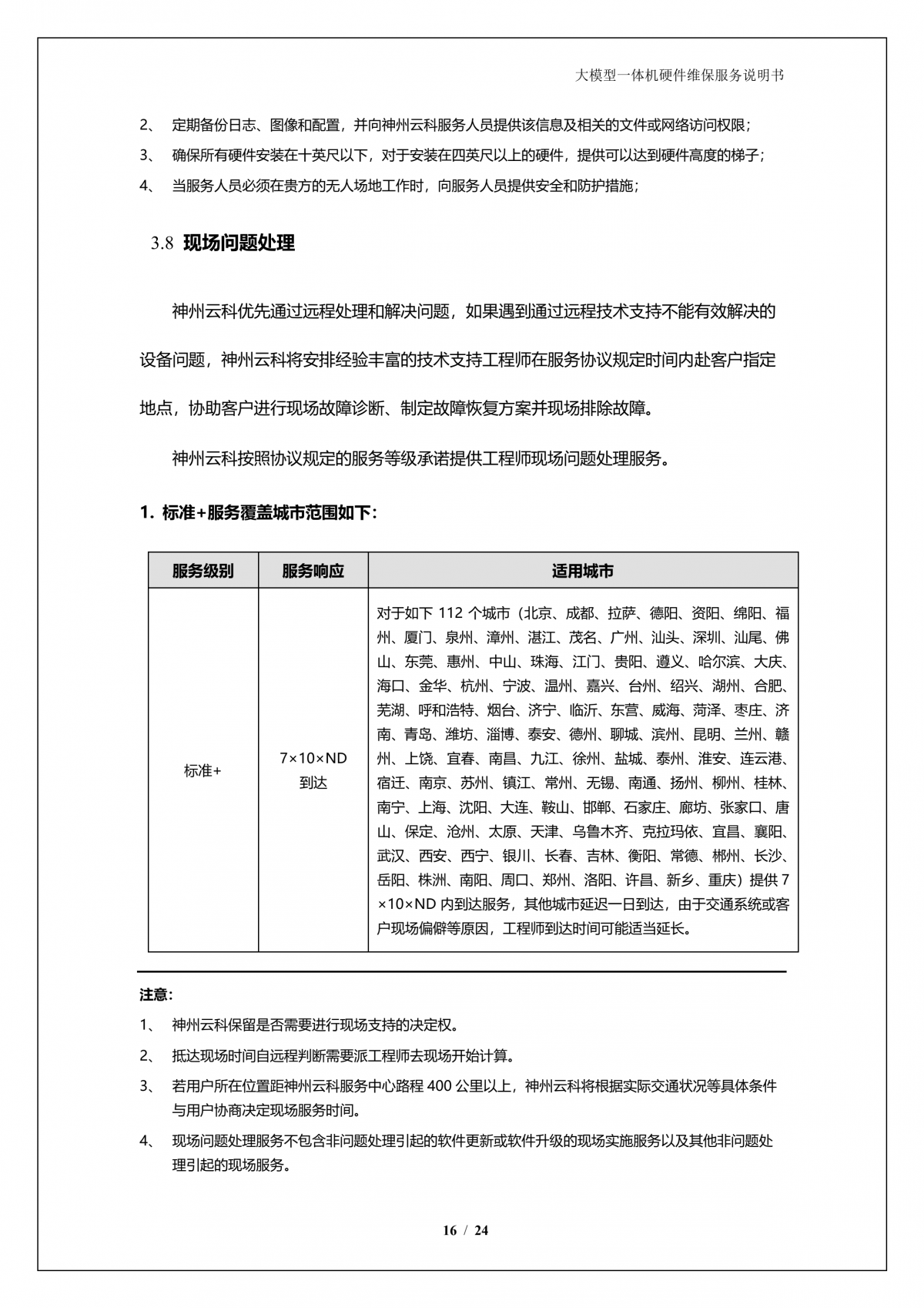 9001cc 以诚为本A924 DS大模型一体机硬件维保服务说明书_V1.1