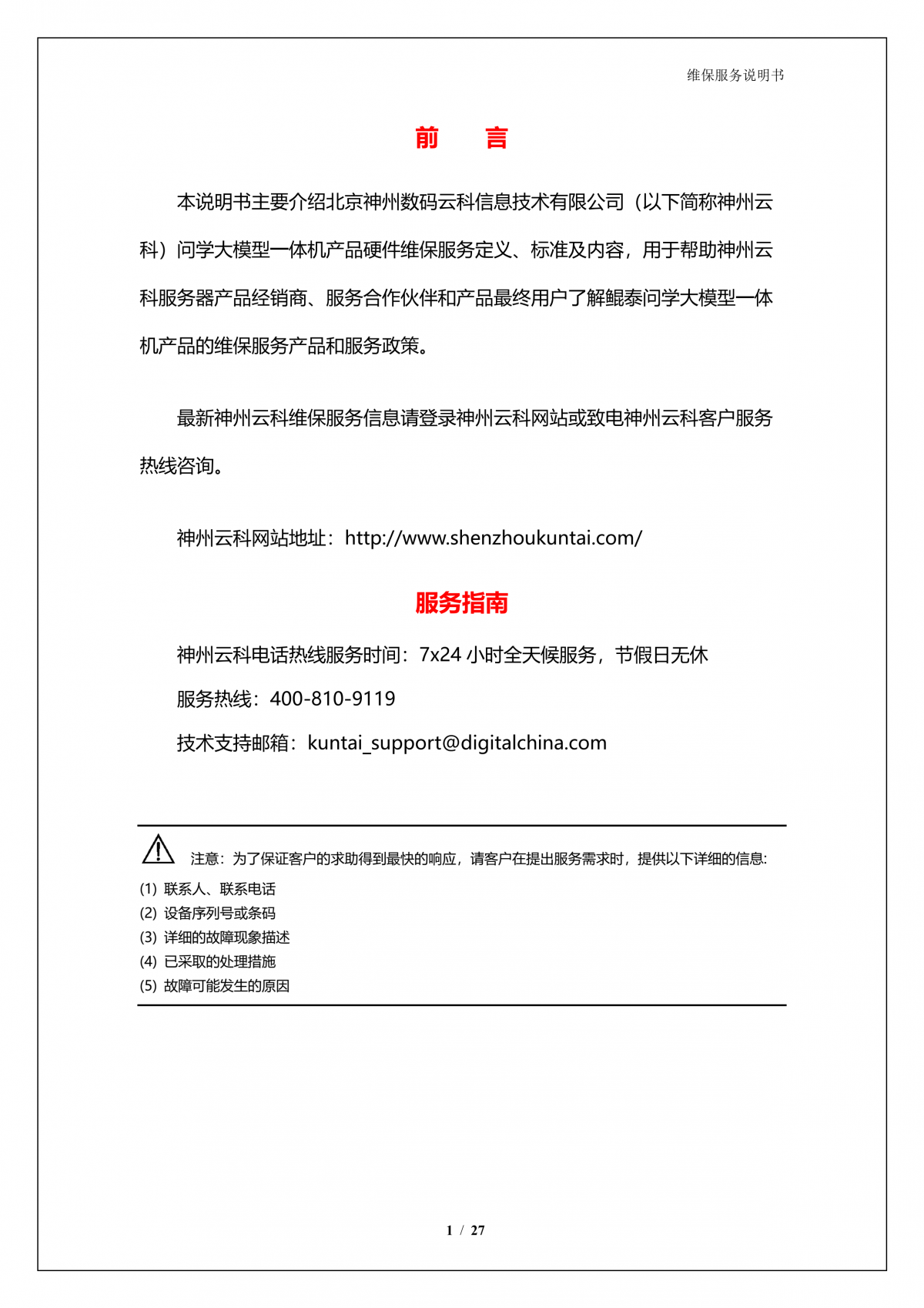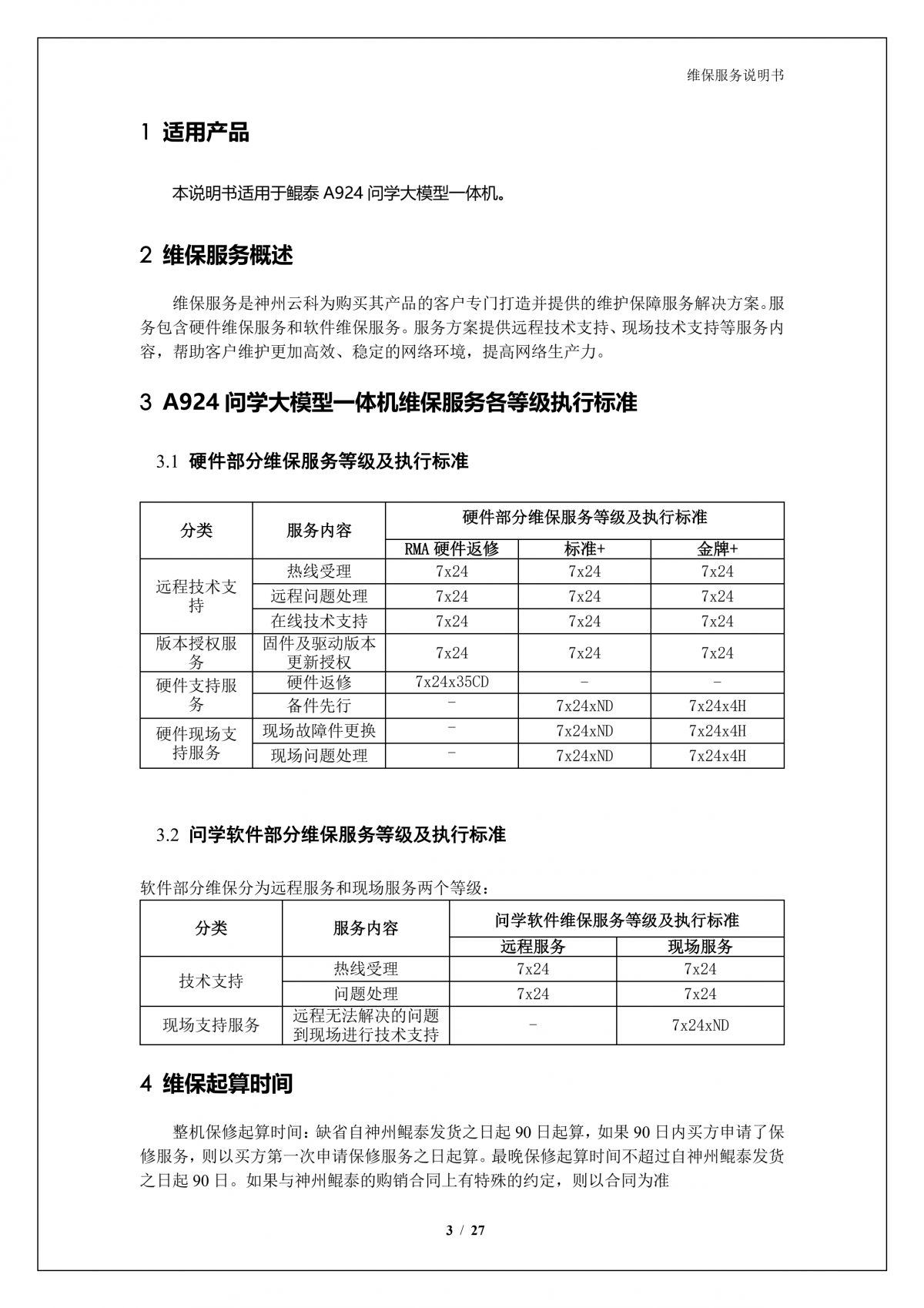 9001cc 以诚为本A924 问学大模型一体机维保服务说明书_V1.0