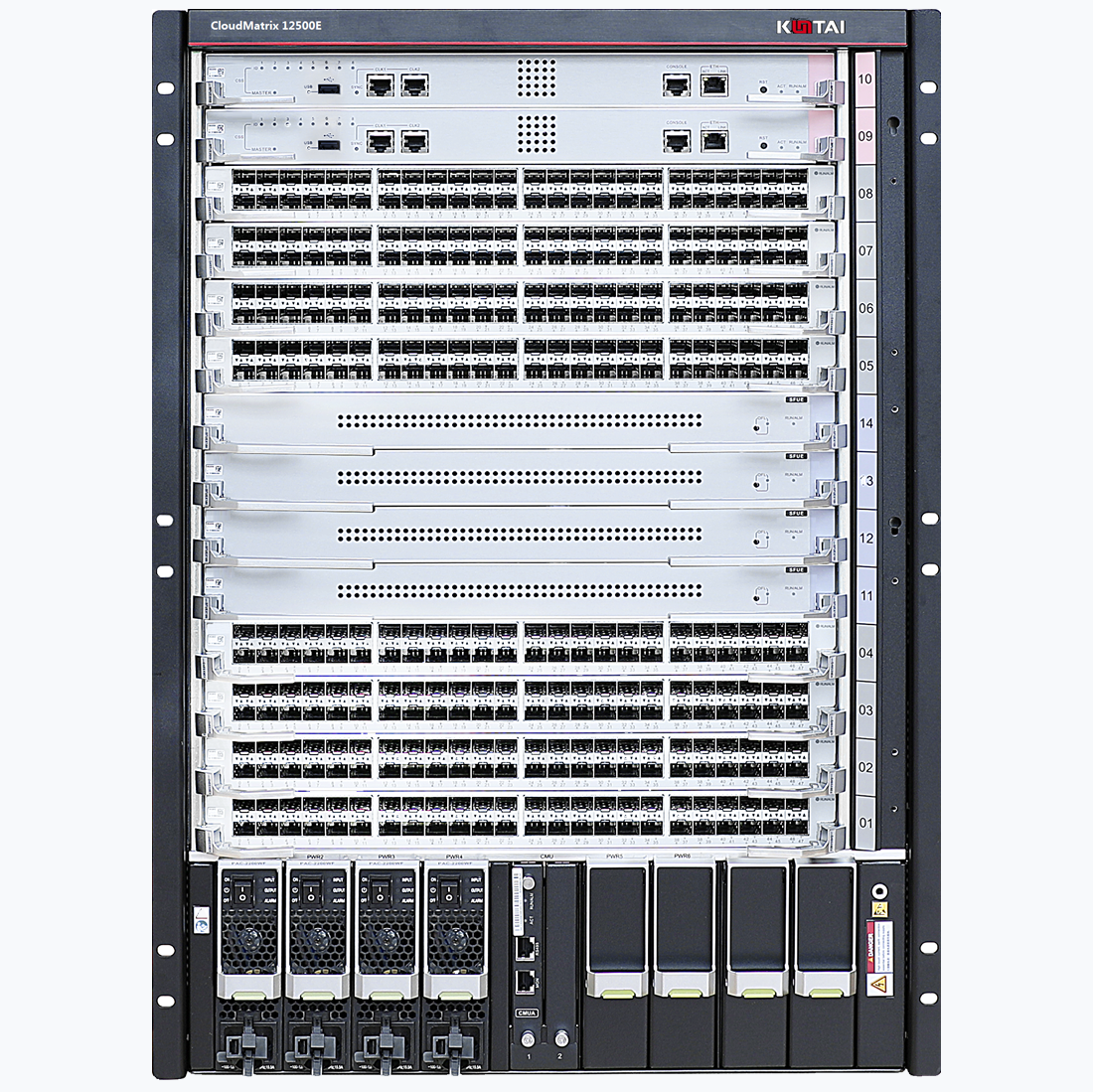 CloudMatrix 12500E 系列智能路由交换机(简称CM12500E)是面向 Wi-Fi 6 全无线时代高端园区网络推出的全新一代旗舰级核心交换机,整机最大可给予 288*100GE/40GE 或 480*25GE 或 576*10GE/GE 端口,同时配套 CloudMatrix6530 及 CloudMatrix5530 系列交换机,可满足不同网络规模或应用场景的建网需求。